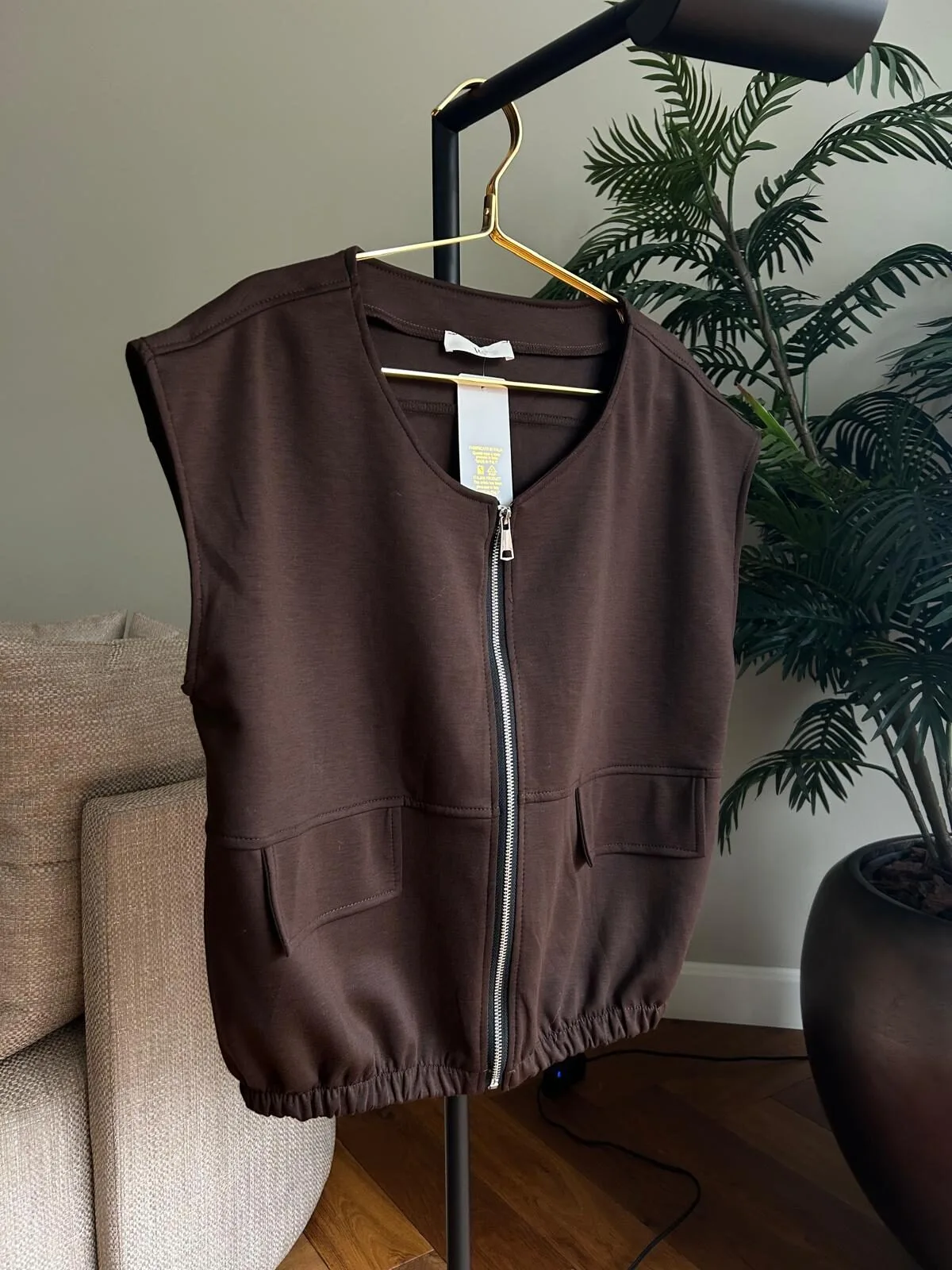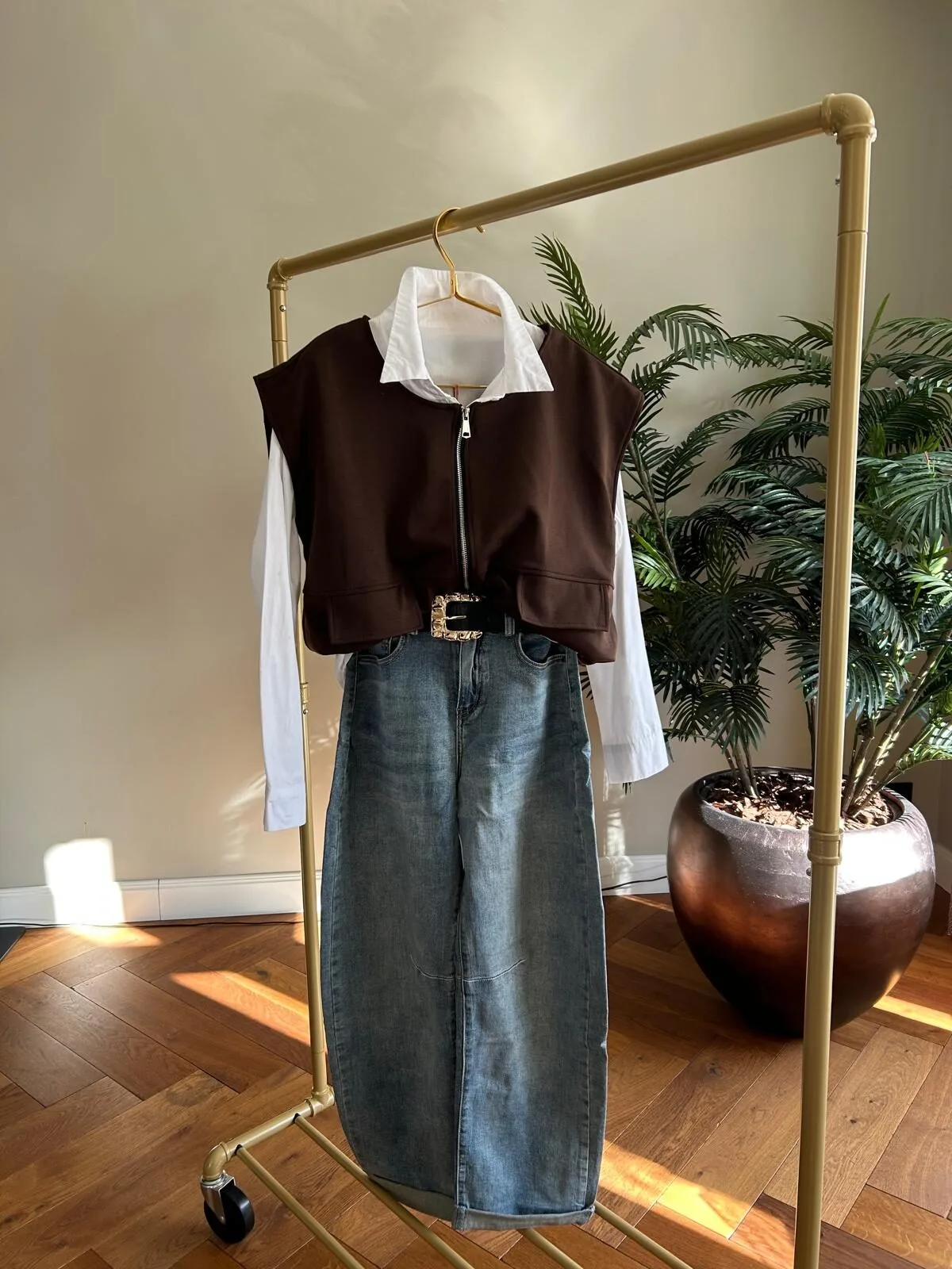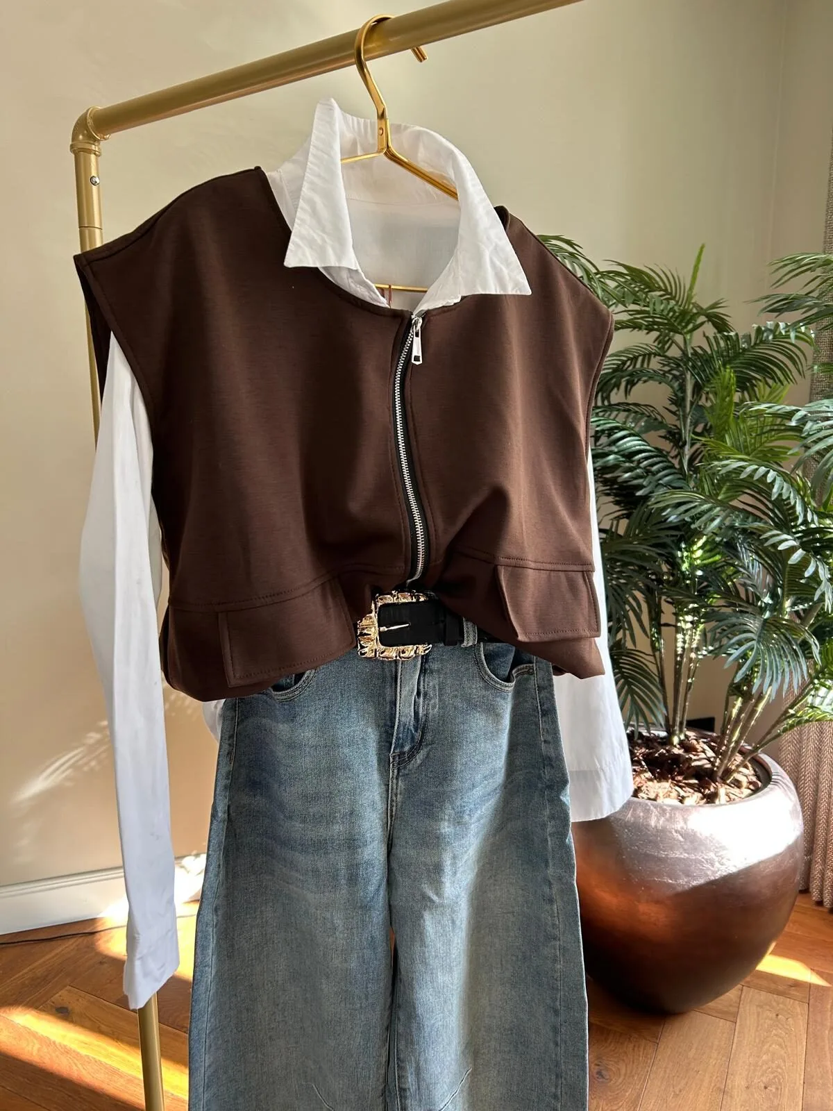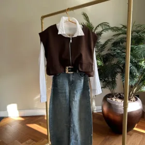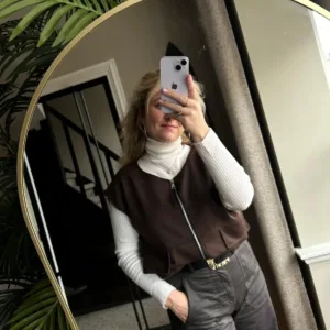 Dit super leuke vestje is super makkelijk te stijlen! Je kunt hem dicht dragen of half open. Aan de onderzijde zit een elastiek band waardoor je hem ook wat hoger kunt dragen. Het leuke is dat je dit vestje ook lekker kunt doordragen!