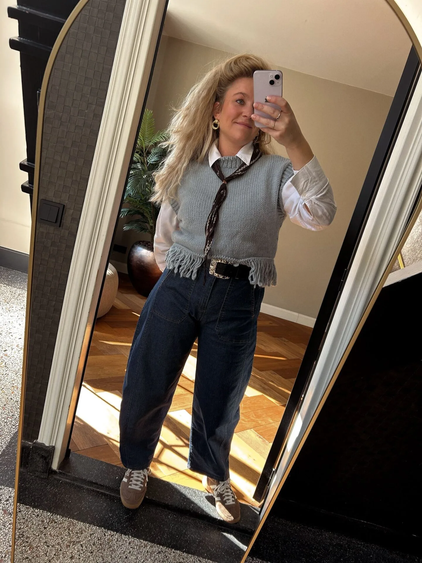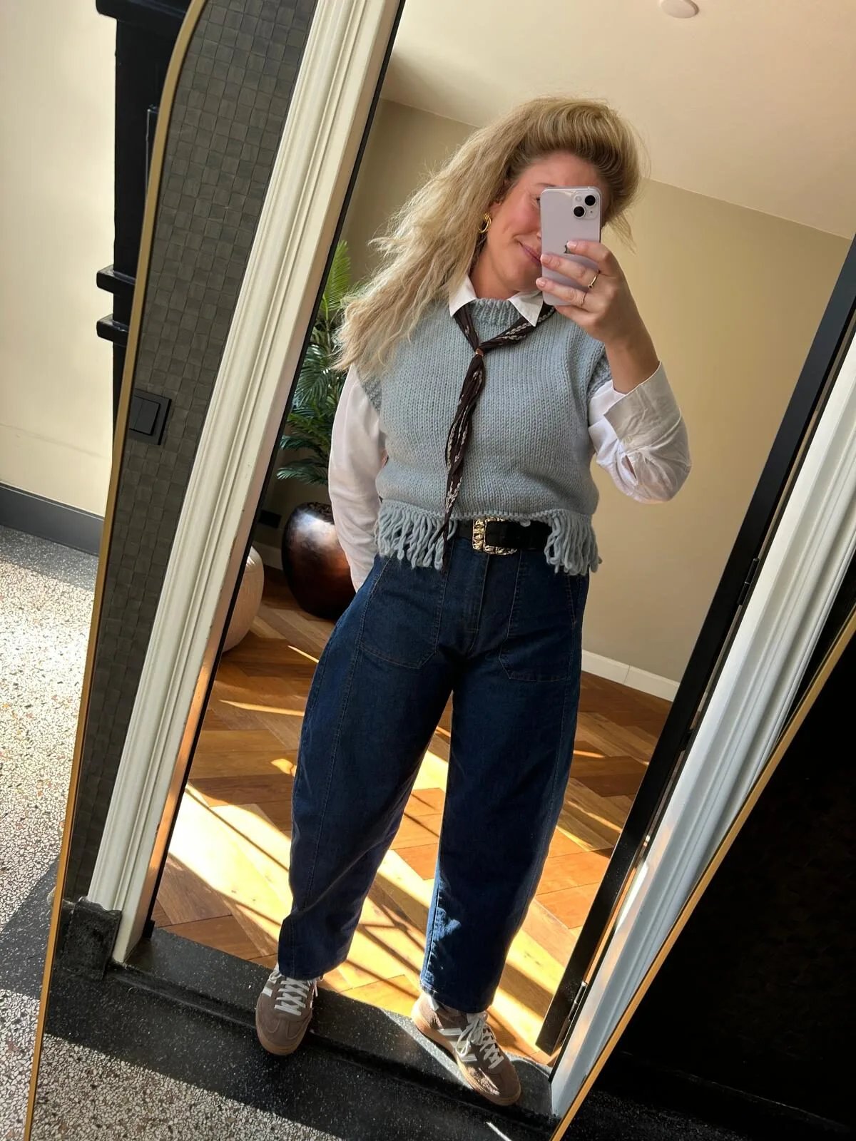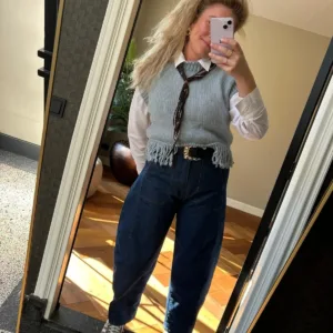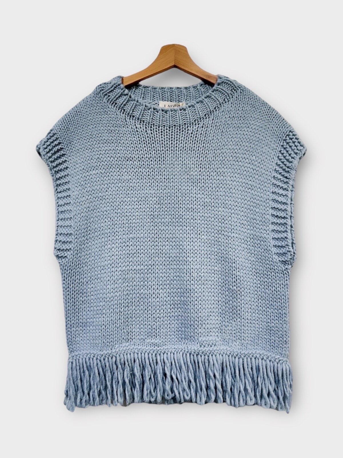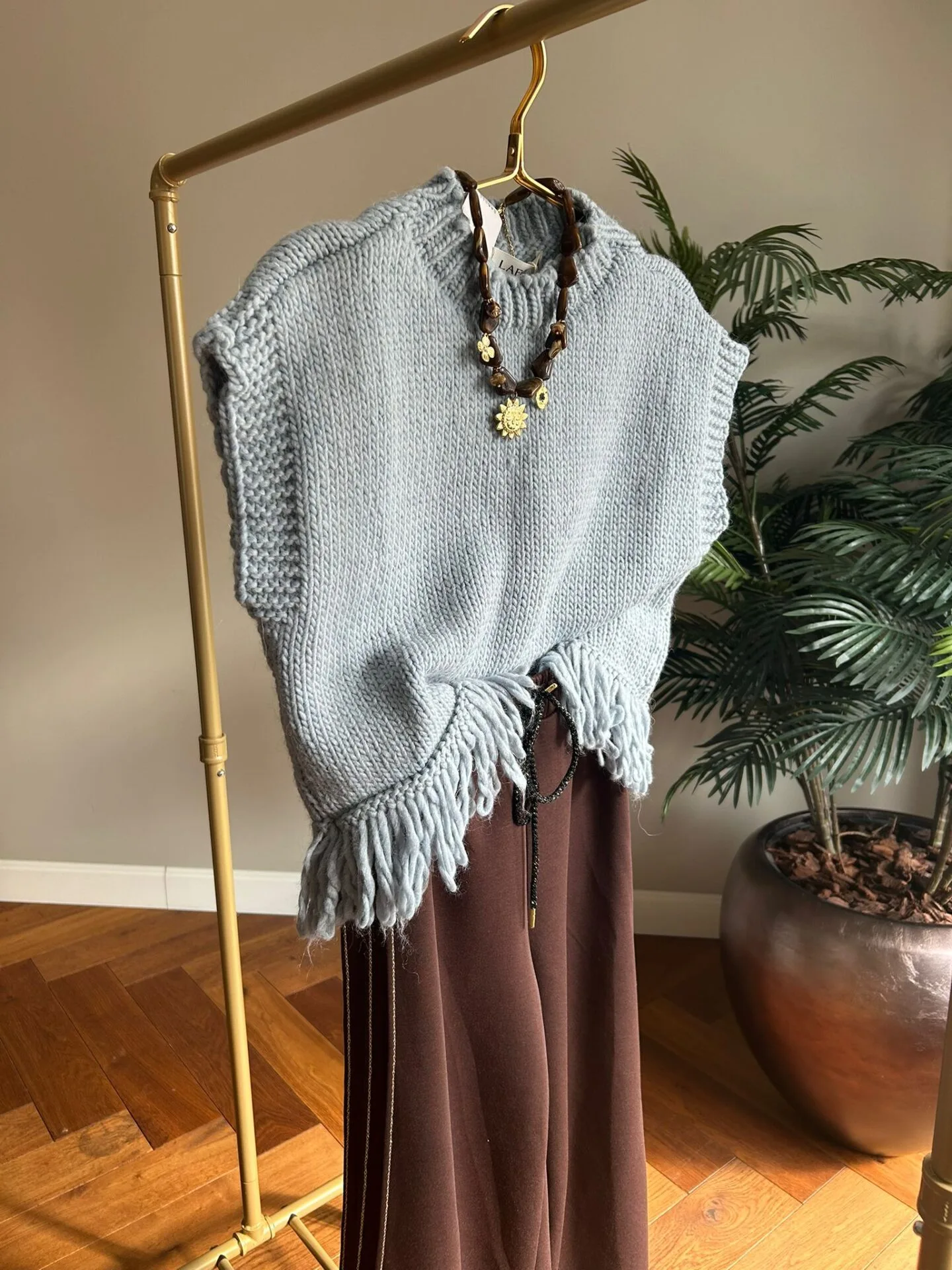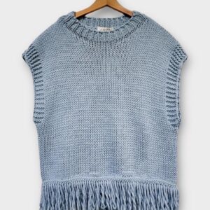 Stijlvolle en warme trui met ronde hals en franjes. Leuk om te combineren met een longsleeve t-shirt, coltrui of blouse!