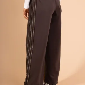 Comfort en elegantie in één! Deze soepel vallende broek met elastische taille en gouden strepen aan de zijkanten is perfect voor elke gelegenheid. Flatteert maat 34 tot 40 voor een stijlvolle look. Tekent niet af!